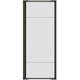 Fit doors ranging from 32” to 36” wide without cutting. Can fit left or right hand doors. Stripe in screen at eye level prevents walking into it. Secure mechanical latch that won’t blow open. This model fits in standard-sized doorways that are x 3 and its plain white color will match just about any decor.